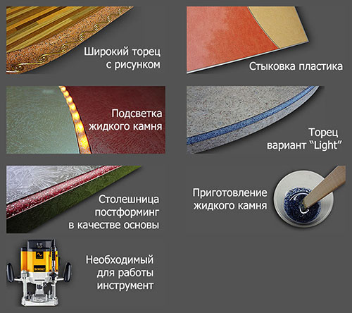 Комбинированные столешницы с торцом из жидкого камня – новинка на мебельном рынке, сочетающая в себе огромное количество достоинств наряду с низкой себестоимостью.